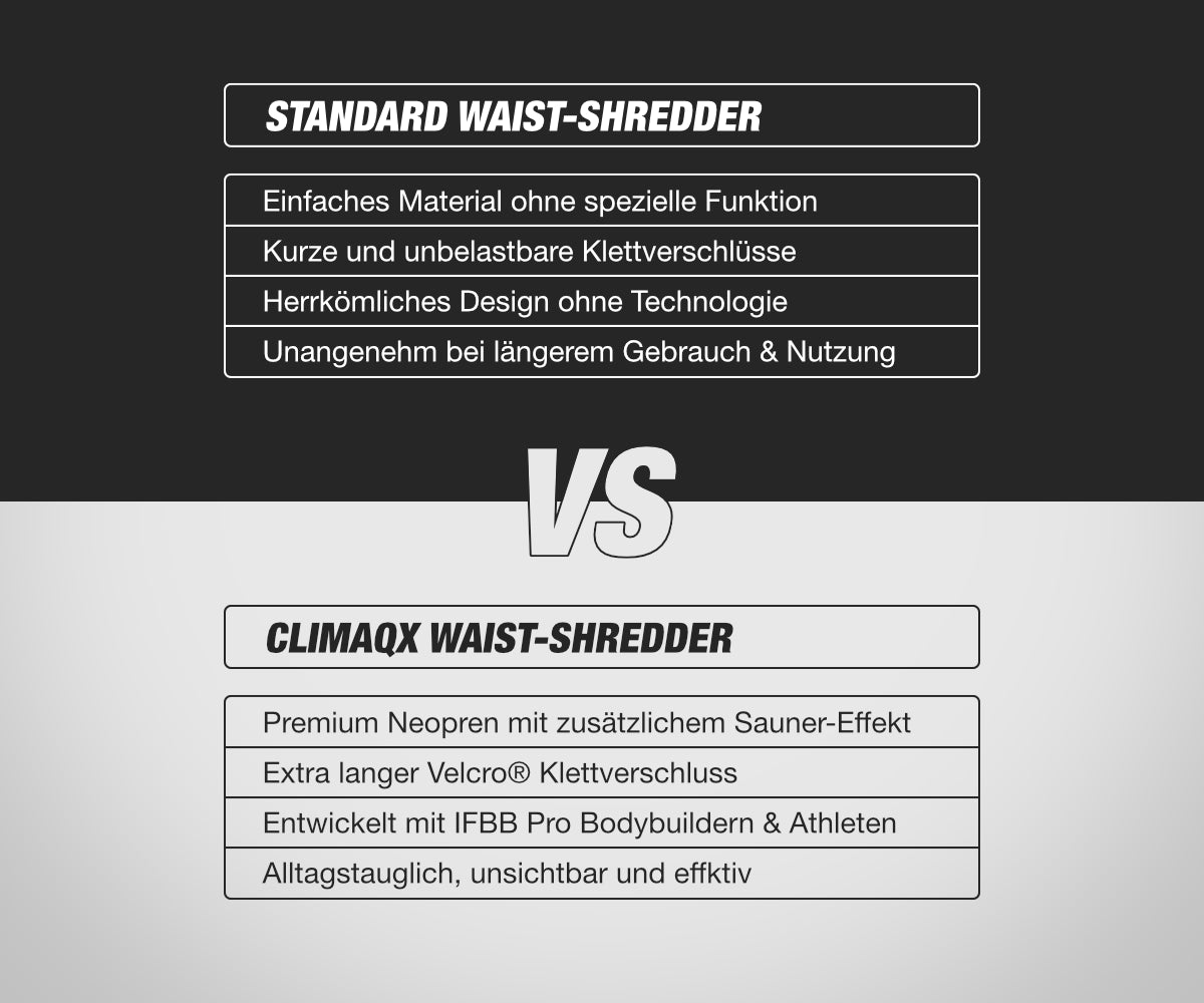 Deine Cardio Sessions werden ab sofort noch effektiver. Der Climaqx Waist Shredder Schwitzgürtel sorgt für eine noch höhere Körpertemperatur, die deine Schweißproduktion signifikant erhöht.